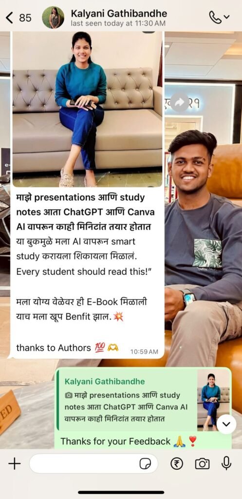 AI तुमचं काम सोपं करतं, वेळ वाचवतं, आणि नव्या कल्पना सुचवतं. हा chapter दाखवेल की AI वापरून तुम्ही लेखन, डिझाइन, आणि व्हिडिओ निर्मिती कशी जलद करू शकता — quality न गमावता.